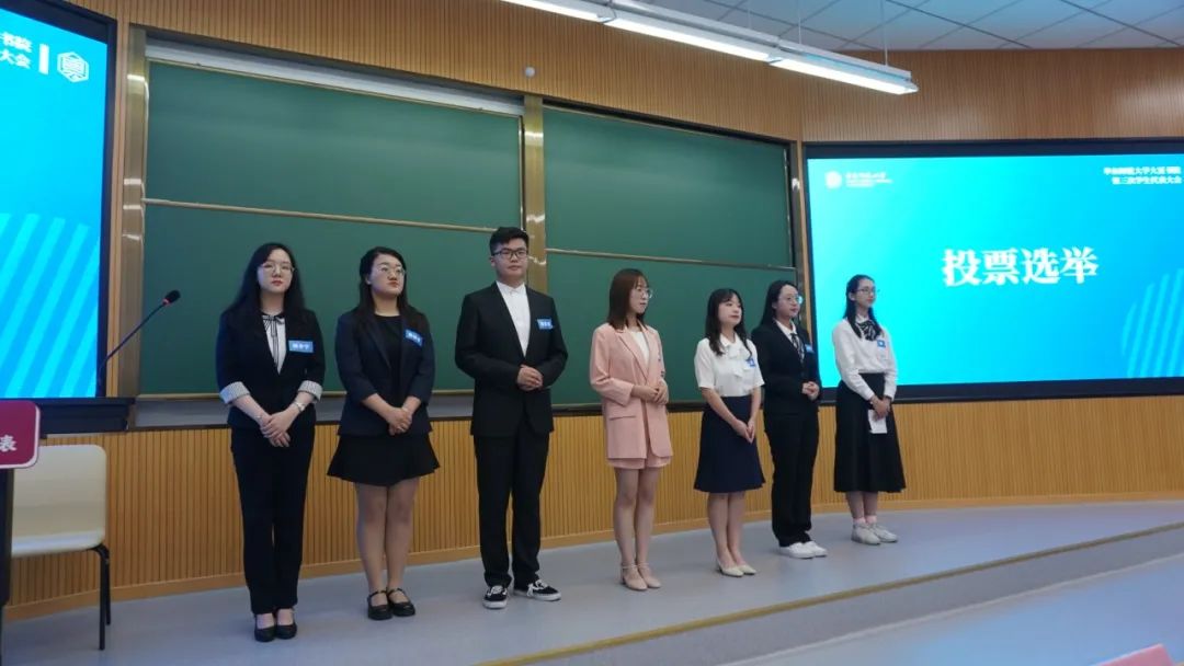 7名主席团正式候选人按照抽签顺序进行演讲陈述并接受代表提问。经选举产生新一届学生会主席团。