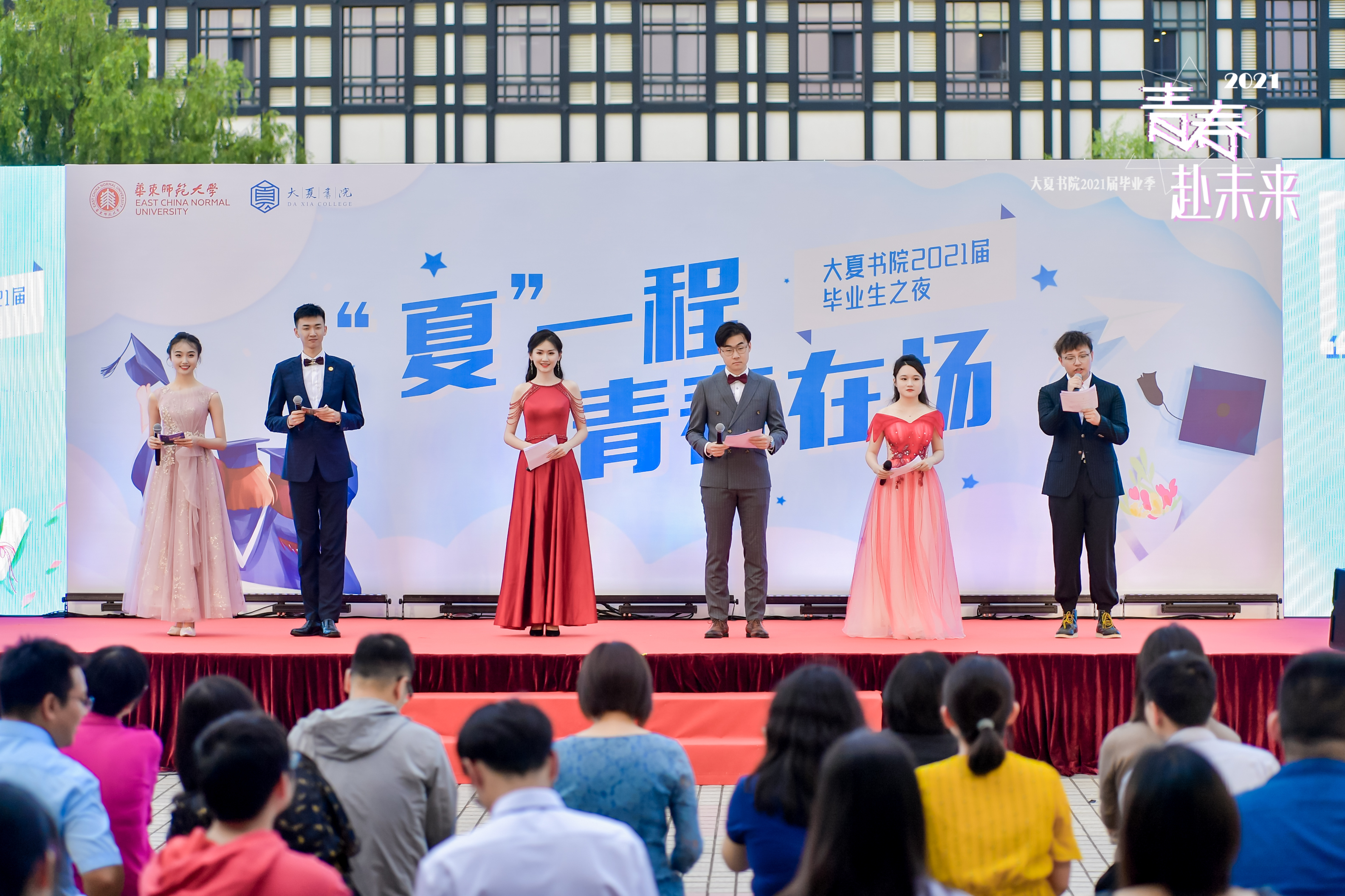 6月16日傍晚,大夏书院2021届毕业生相聚在樱桃河畔,感念四年的收获与成长,铭记师长的寄语和期望,携爱奔赴未来。哲学系党委书记王柏俊、法学院党委书记张惠虹、中文系党委副书记徐燕婷、历史学系副系主任瞿骏、外语学院党委副书记江宇靖、传播学院党委副书记杜彬彬,以及书院全体老师参加本次毕业季主题活动,送别即将奔涌入海的“后浪”。2017级社会学专业孙睦迪、2017级法学专业汪羽舒及2017级播音与主持艺术专业张泰然、李雅琦、王铸、杜金芮共同主持。