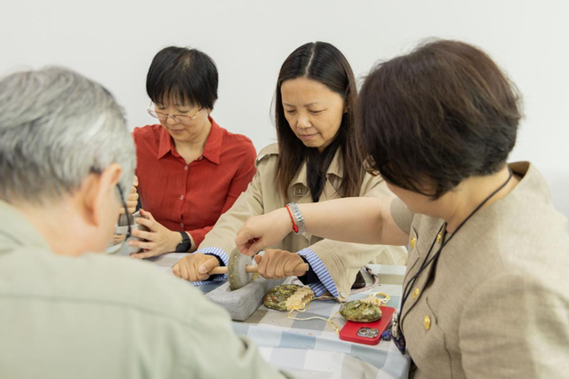 The palm ropes for intangible cultural heritage palm weaving fluttered, and the wonderful intangible cultural heritage skills made teachers and students praise repeatedly.