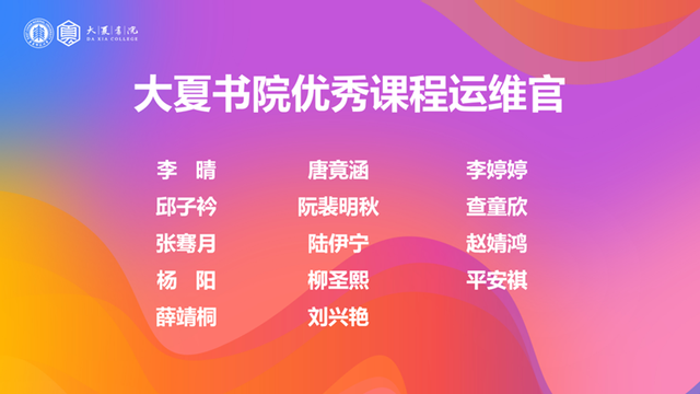 Daxia College has a responsible and proactive student team, including teaching mentors and teaching assistants. The successful holding of each course is inseparable from their efforts and dedication. They are like a well-coordinated band, with each person playing a unique melody in their own position. To commend the outstanding, Zhuang Yu and Pang Weiguo presented certificates of honor to the outstanding candidates of Daxia College. A total of 6 outstanding teaching mentors (Outstanding Contribution Award), 8 outstanding teaching mentors, and 14 outstanding teaching assistants were selected.