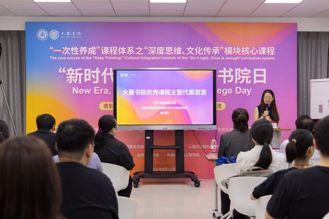 Yang Yujing, an undergraduate student of Grade 2023 from the Faculty of Education, shared her growth journey in the college with everyone. When she first entered the college, she was a shy and nervous work-study assistant. Through the practice of course operation, she gradually grew into a teaching mentor and a work-study student manager, becoming a responsible and collaborative team manager. She was grateful for the careful guidance of the teachers, whose professionalism and enthusiasm illuminated her path of seeking knowledge; grateful for the active participation of the students, whose feedback and suggestions were the driving force for curriculum optimization; and also grateful for the platform provided by the college, which allowed her to gain growth in organizing and operating courses and fighting side by side with the team. Finally, she wished that Daxia College would have more diverse and rich courses to help students discover their interests and tap their potential, and also hoped that everyone would thrive on the fertile soil of the college and realize their dreams.