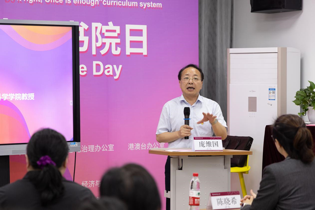 Pang Weiguo gave a detailed introduction to the curriculum philosophy and educational characteristics of Daxia College in five sections: "College Overview", "Teacher-Student Team", "Curriculum System", "Exchange and Cooperation", and "Platform Construction". He pointed out that Daxia College innovatively designed the "Do it right, Once is enough" curriculum system, and through eight module courses, it provides students with a broad development platform and diverse growth paths.