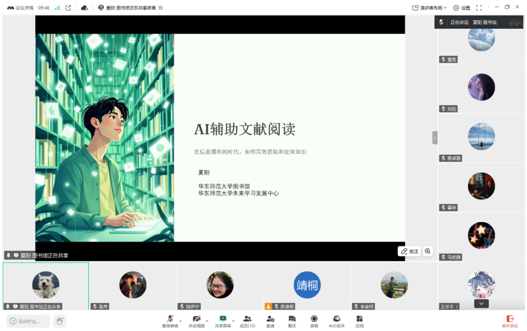 On July 25, 2025, the thirdlessonof “AI SummerCamp” course series,with the topic of "AI Empowering Literature Reading", was conducted by Daxia College. This lesson was delivered by Xia Yang, an intermediate librarian of Inter-disciplinary Support Center and hosted by Zhan Song, the Teaching Tutor of Daxia, with ECNU library as the co-organizer.