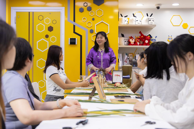 The palm ropes for intangible cultural heritage palm weaving fluttered, and the wonderful intangible cultural heritage skills made teachers and students praise repeatedly.