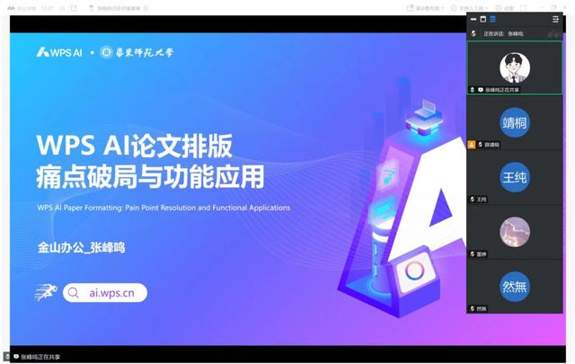 On July 18, 2025, the second lesson of the "AI Summer Camp" course series was held by Daxia College, with the topic of "WPS AI Paper Formatting: Problem Resolution and Function Applications". Hosted by Zhan Song, the Teaching Tutor of Daxia, this lesson invited Zhang Fengming, an official lecturer of WPS from Kingsoft Office to deliverthe lecture.