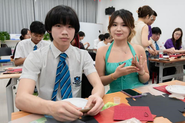 Today, we welcomed 20 students from Mazenod School in Australia. Many of these 20 students have East Asian appearances, which eased our nervousness. Following the teachers, we visited the library, Daxia College, and the canteen together. Aiden, the student I paired with, is an Australian immigrant from Hong Kong. We made a pair of exquisite fragrance plaques and had a free talk about various hobbies, spending a wonderful morning.